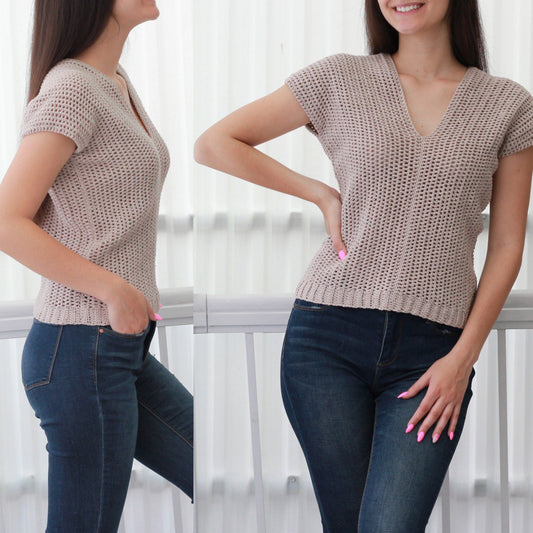 Häkelanleitung ALYSSA V-Neck Top – PDF (XS–3XL)